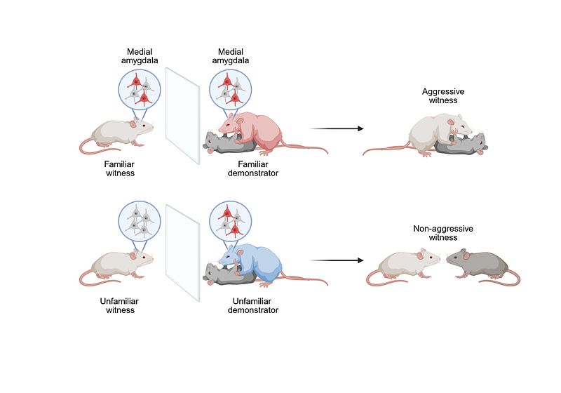 Socially Transmitted Aggression (STA) is a unique form of observational learning in which mice acquire aggressive behavior after witnessing familiar peers attack others. Our research shows that this process relies on specific brain circuits, including the medial amygdala and ventromedial hypothalamus, which become sensitized by familiarity. By combining advanced neuroscience tools with behavioral models we developed, we are uncovering how peer networks shape aggressive behavior. This work has broad relevance to real-world problems such as adolescent violence, gang dynamics, and the social contagion of harmful behaviors.